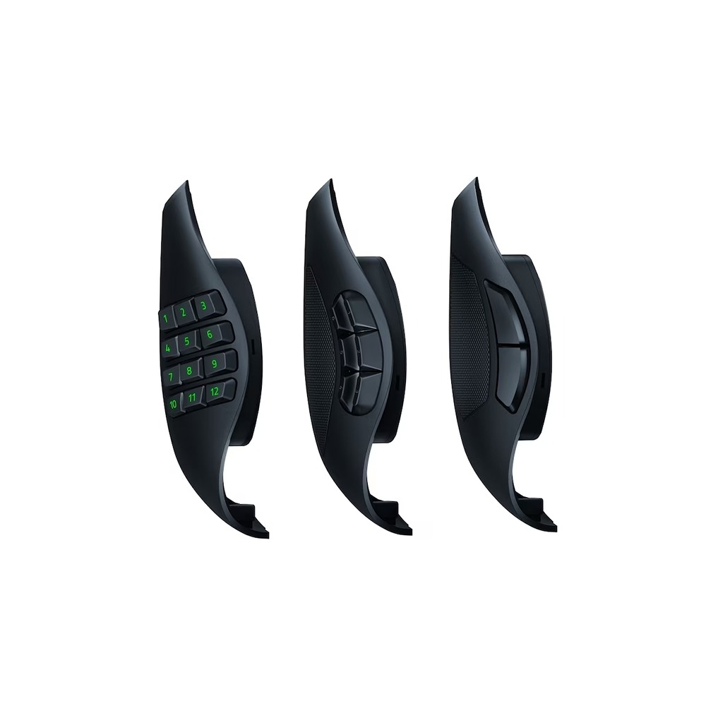 Den här modulära trådlösa spelmusen kommer med 3 typer av sidoplåtar som fästs magnetiskt – layouter med 12, 6 och 2 knappar speciellt utformade för att hjälpa dig att anpassa dig till olika spelgenrer. Optimera ditt spel med dessa rekommenderade knappkonfigurationer för varje sidoplatta.