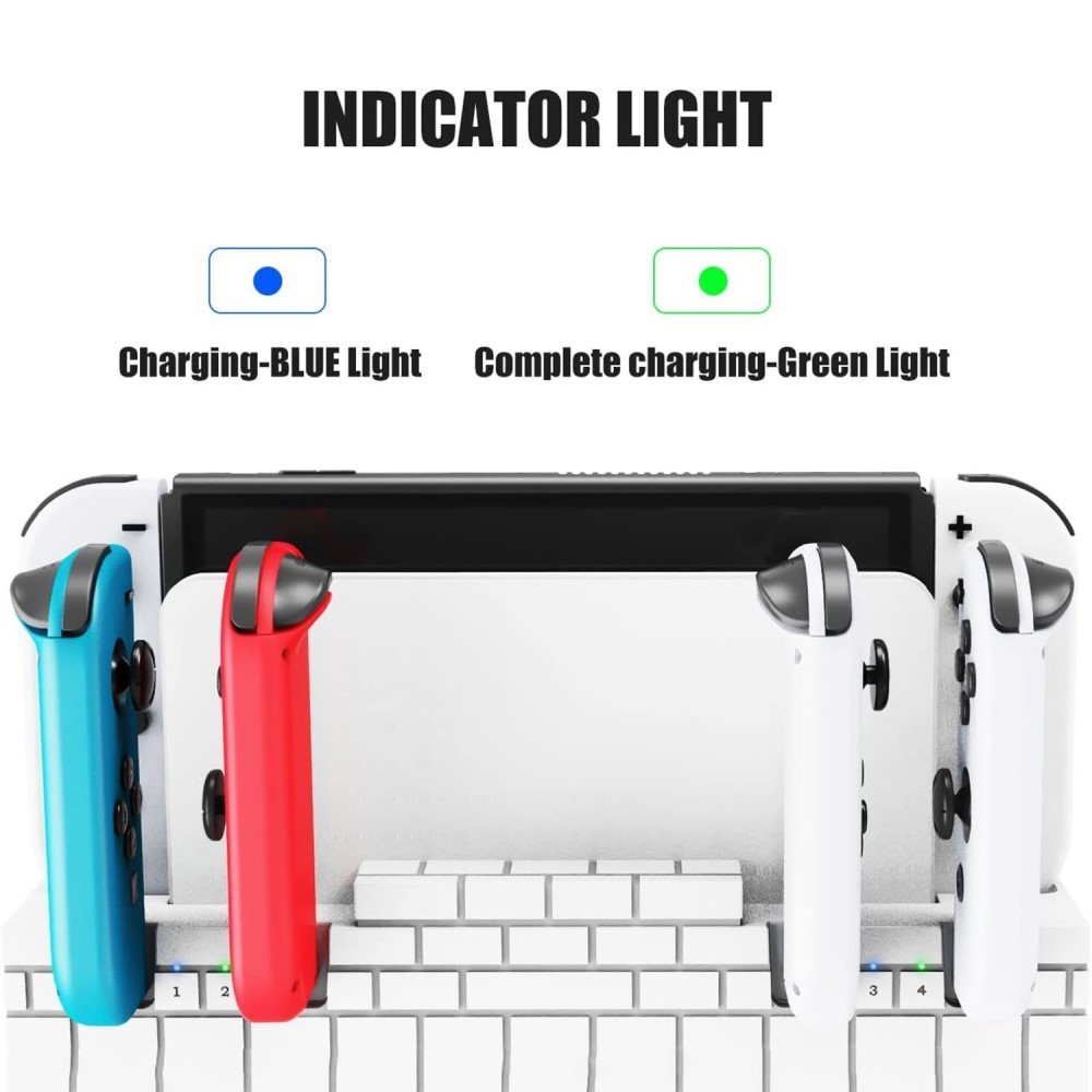 - 4 laddningsplatser som stöder samtidig laddning av 1 till 4 JoyCon-handtag