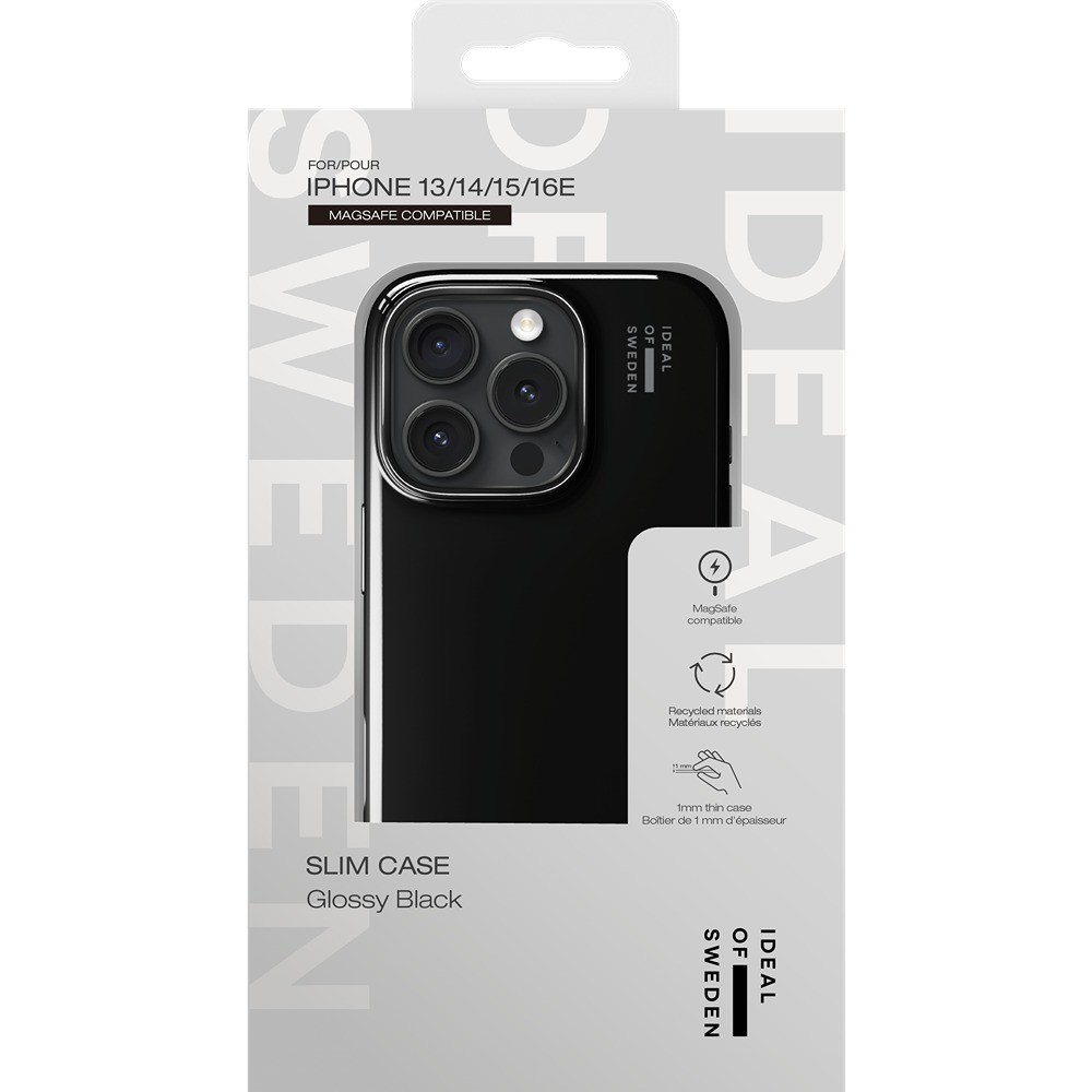Ideal of Sweden iPhone 13/14/15/16e/17e Skal Slim Case MagSafe Glossy Black är ett svart mobilskal till iPhone 13, iPhone 14, iPhone 15 och iPhone 16e/17e.