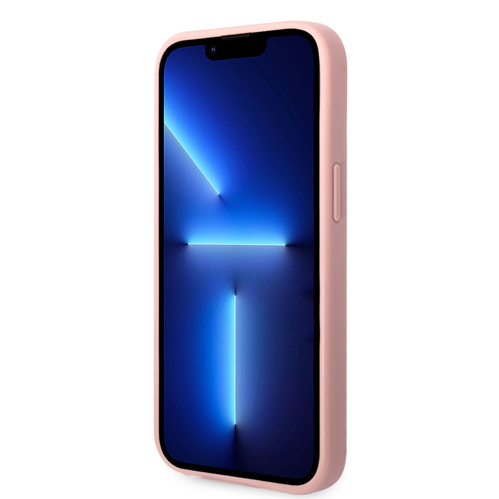 Guess iPhone 14 Plus Skal Glitter Flakes Metal Logo Rosa är ett rosa skal till iPhone 14 Plus.