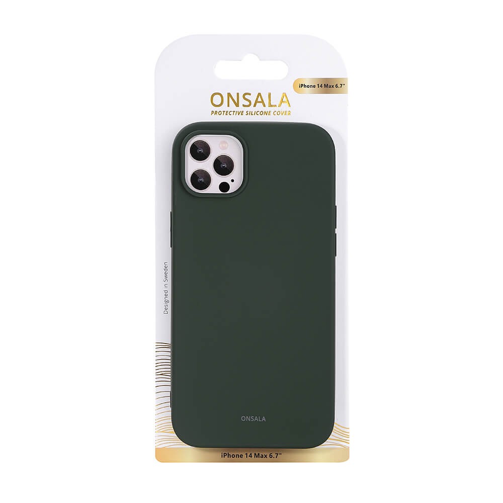 Onsala iPhone 14 Plus Skal Silikon Olive Green är ett grönt mobilskal till iPhone 14 Plus.