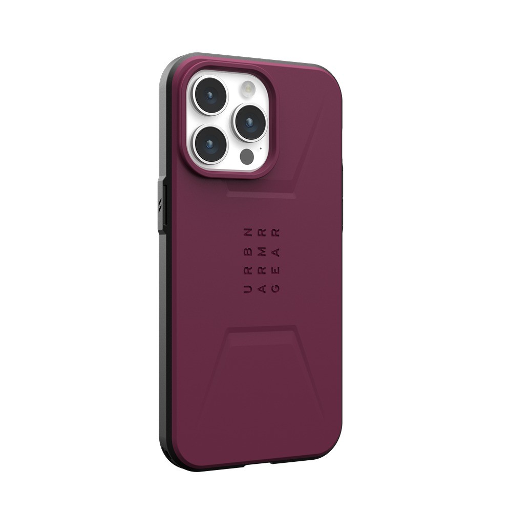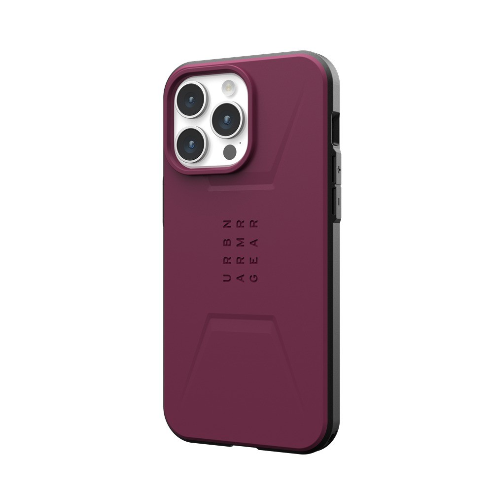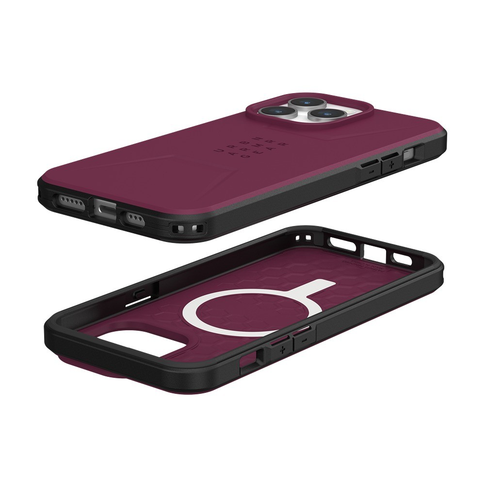 Urban Armor Gear (UAG) iPhone 15 Pro Max Skal Civilian MagSafe Bordeaux är ett rött mobilskal till iPhone 15 Pro Max.