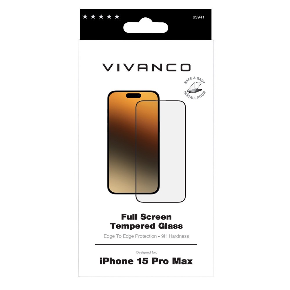Vivanco iPhone 15 Pro Max Skärmskydd Full Screen är ett genomskinligt skyddsglas till iPhone 15 Pro Max.
