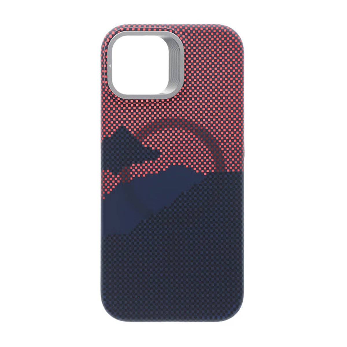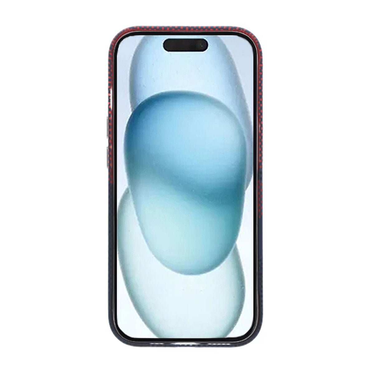 Med sin djupa röda nyans med blåa detaljer skapar detta mobilskal en lyxig effekt som lyfter fram telefonens elegans.
