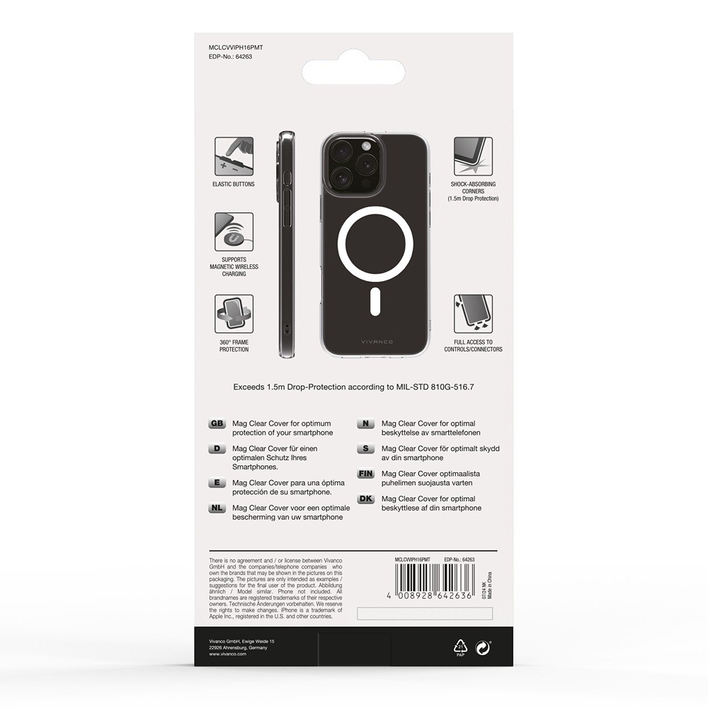 Vivanco iPhone 16 Pro Max Skal Mag Clear Transparent är ett genomskinligt mobilskal till iPhone 16 Pro Max.