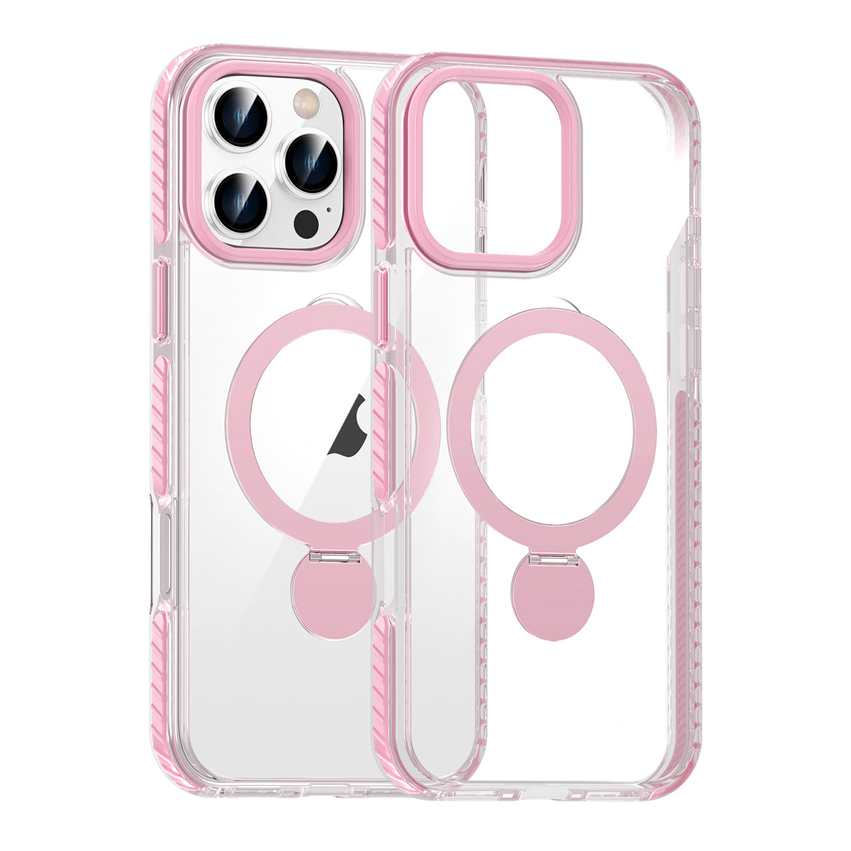Ge din iPhone 16 Pro Max både stil och smart funktion med detta transparenta och rosa MagSafe-skal utrustat med en utfällbar ring som snabbt blir ett praktiskt stöd i vardagen.