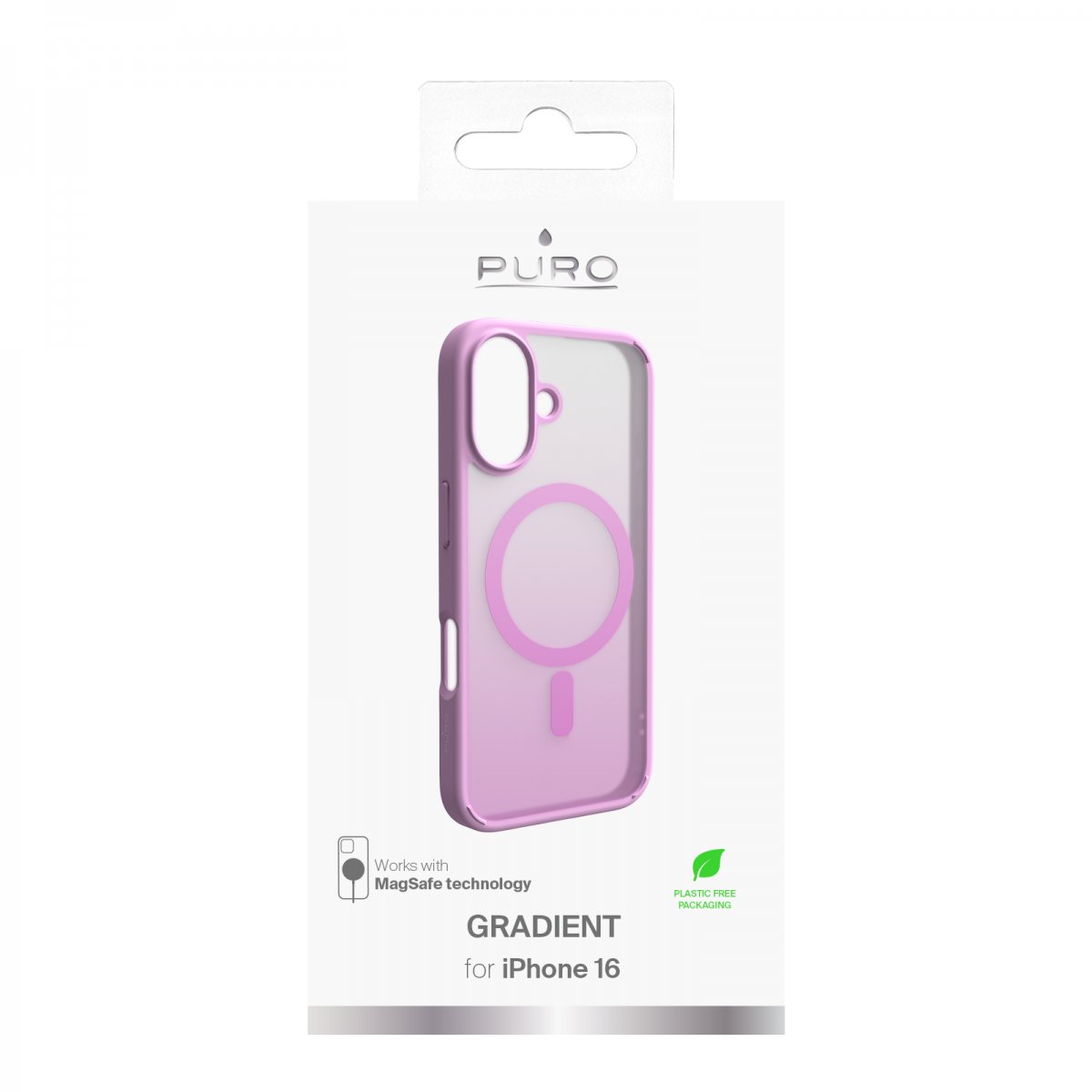 Puro iPhone 16 Skal Gradient Rosa är ett rosa och genomskinligt mobilskal till iPhone 16.