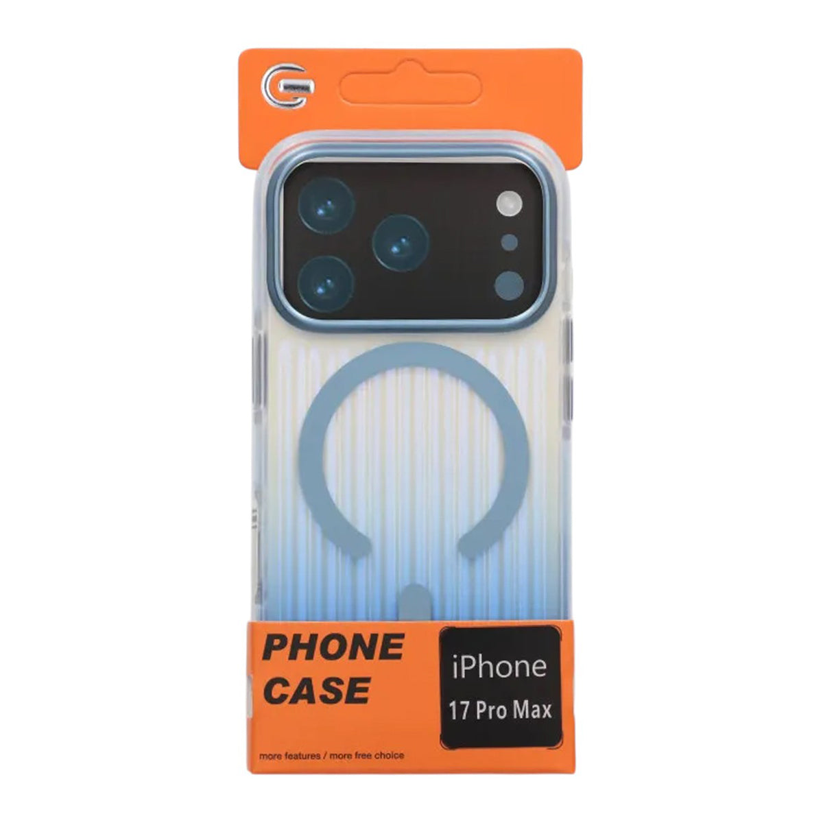 Säkra din iPhone 17 Pro Max med detta tuffa, korrugerade mobilskal som har en elegant färgövergång från blå till transparent.