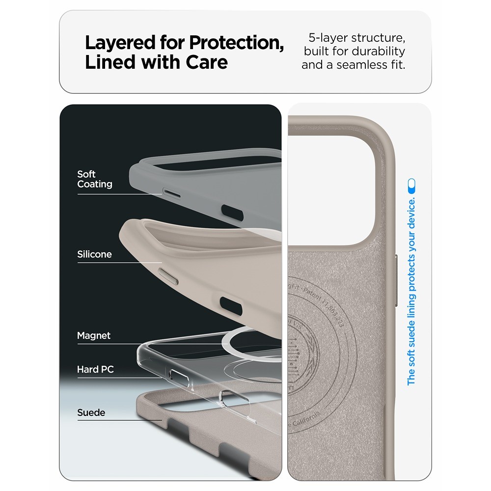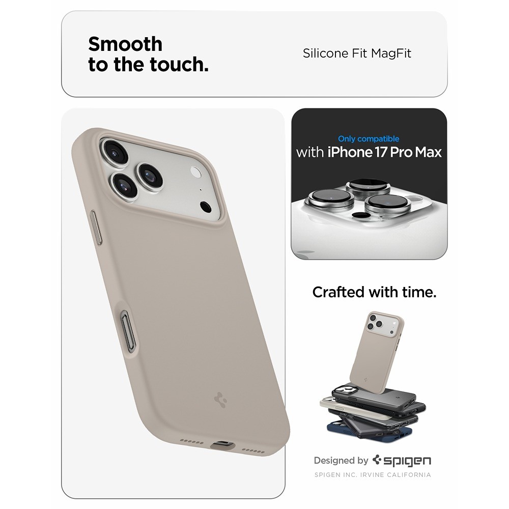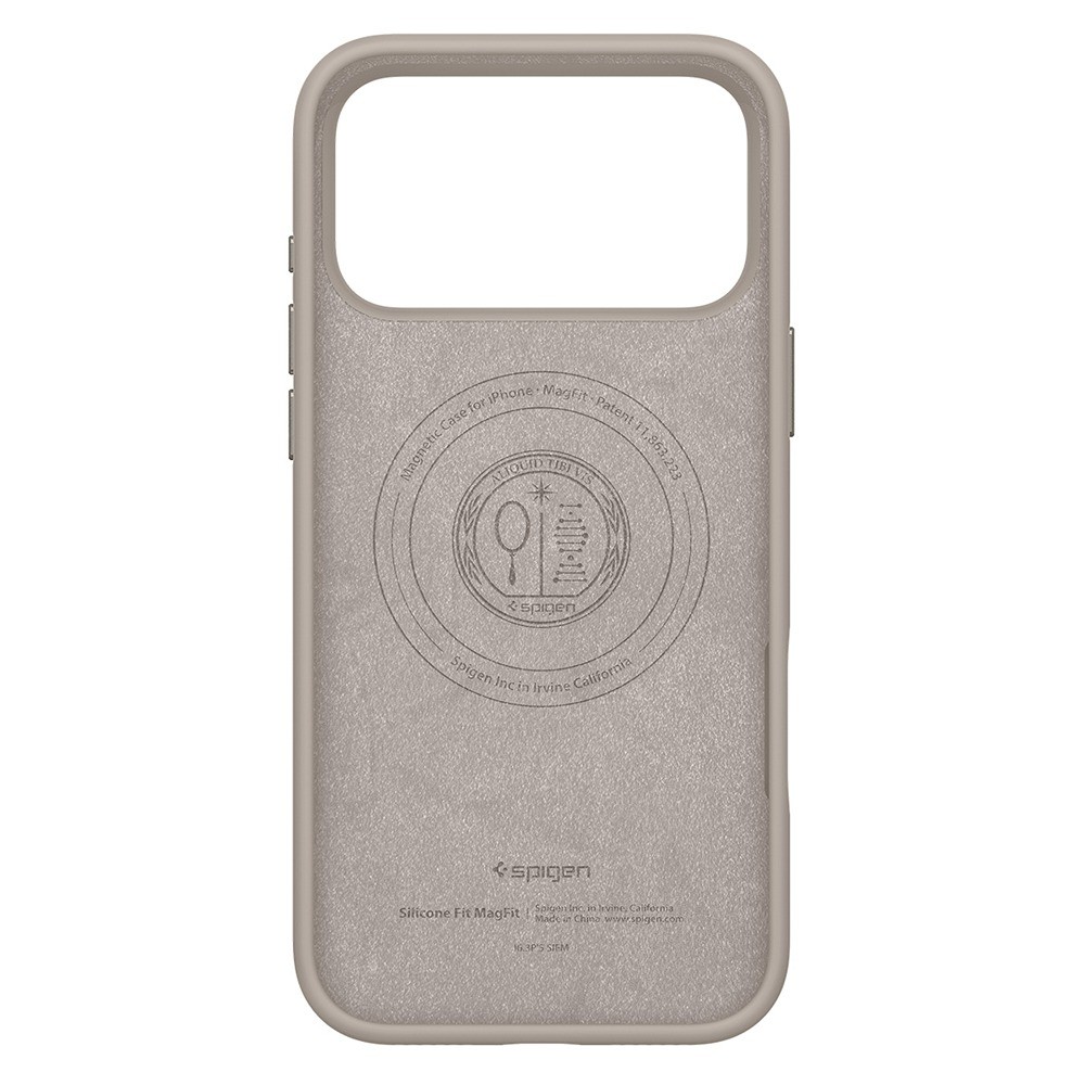 Spigen iPhone 17 Pro Max Skal Silicone Fit MagFit Stone är ett grått mobilskal till iPhone 17 Pro Max.