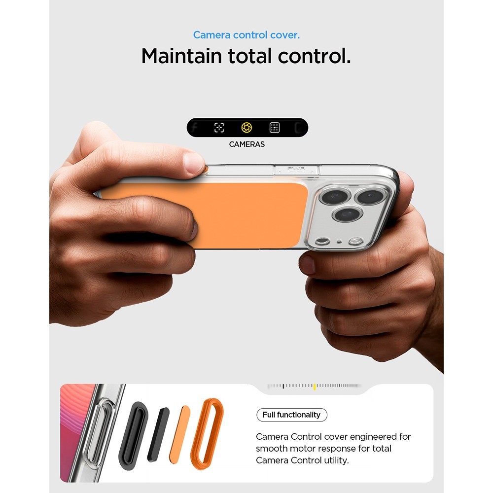 Spigen iPhone 17 Pro Max Skal Ultra Hybrid T MagFit Glossy Orange är ett orange och genomskinligt mobilskal till Apple iPhone 17 Pro Max.