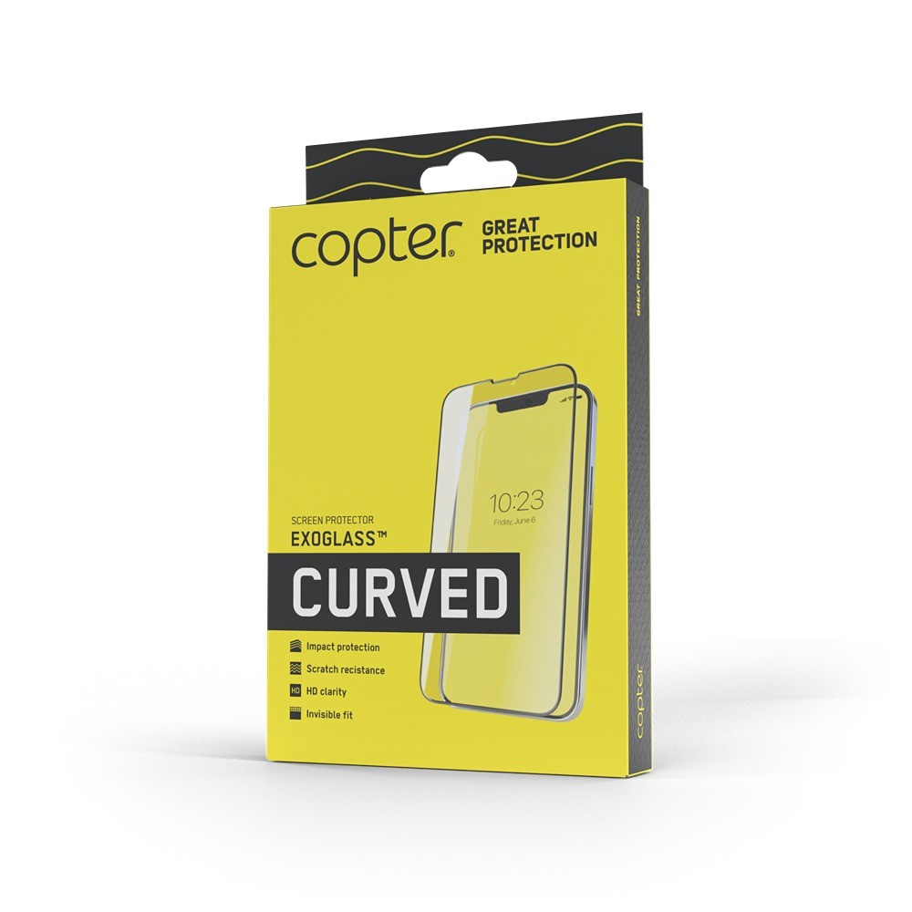 Copter iPhone 17/iPhone 17 Pro Skärmskydd Exoglass Curved är ett genomskinligt skyddsglas till iPhone 17 och iPhone 17 Pro.