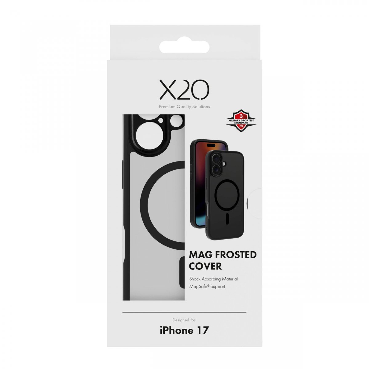 X2O iPhone 17 Skal Mag Frosted Svart är ett svart och genomskinligt mobilskal till iPhone 17.