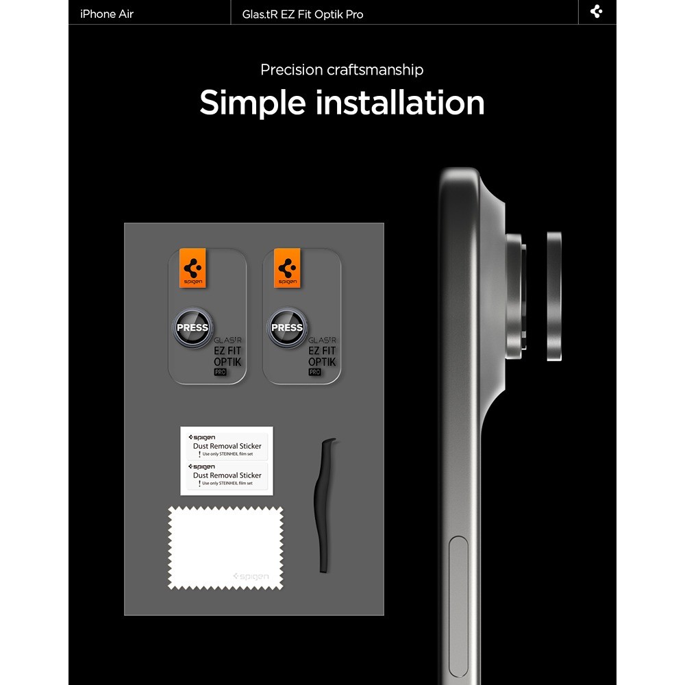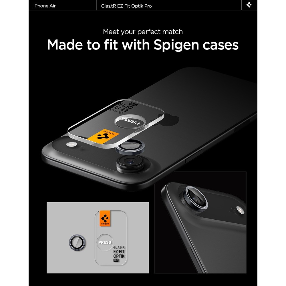Spigen iPhone Air Kameraskydd GLAS.tR EZ Fit Optik Pro 2-pack Grå är ett grått och genomskinligt kameraskydd till iPhone Air.
