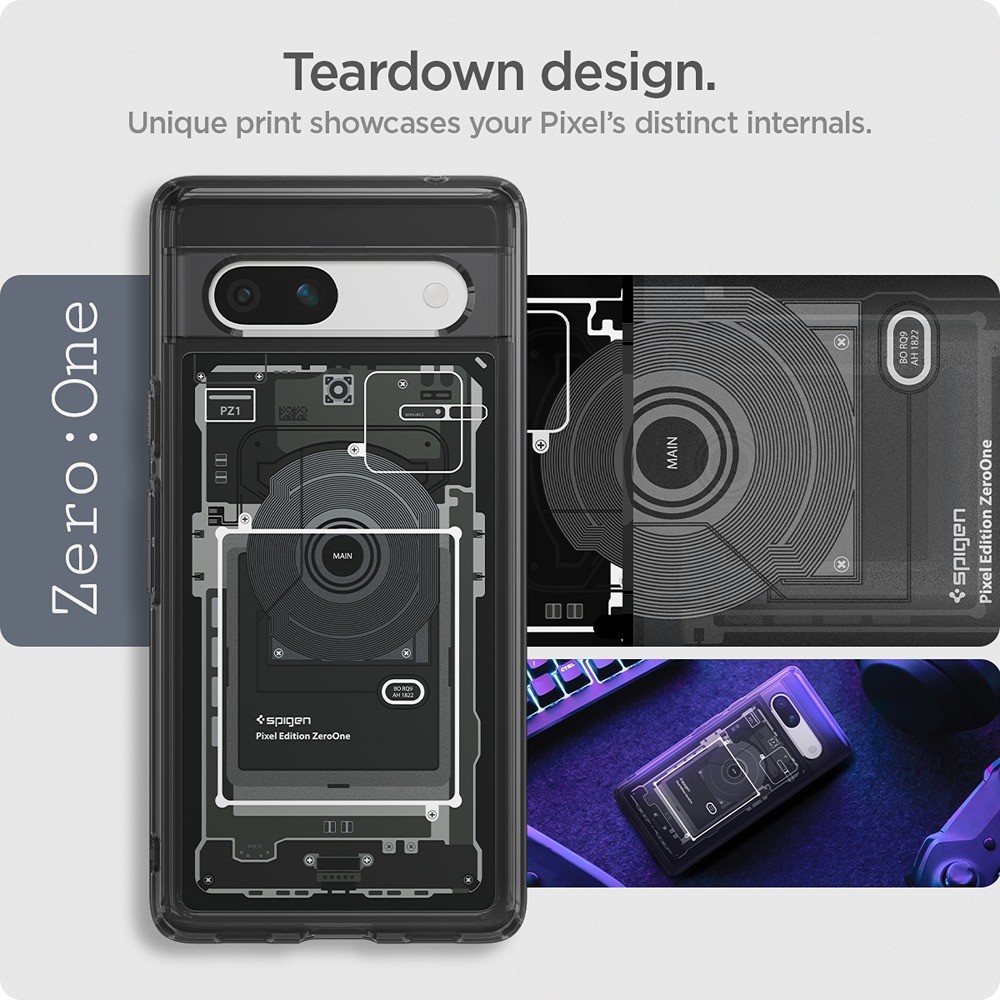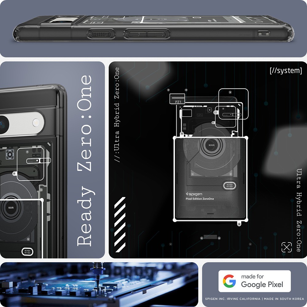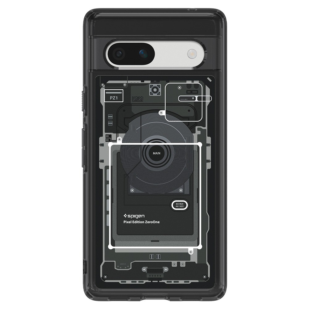 Spigen Google Pixel 7a Skal Ultra Hybrid Zero One Svart är ett svart mobilskal till Google Pixel 7A.
