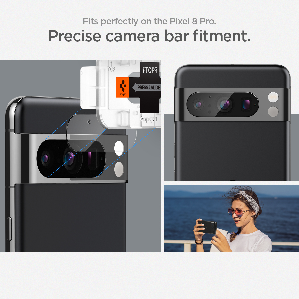 Spigen Google Pixel 8 Pro Kameraskydd Glas.tR EZ Fit Optik Crystal Clear 2-pack är ett genomskinligt kameraskydd till Google Pixel 8 Pro.