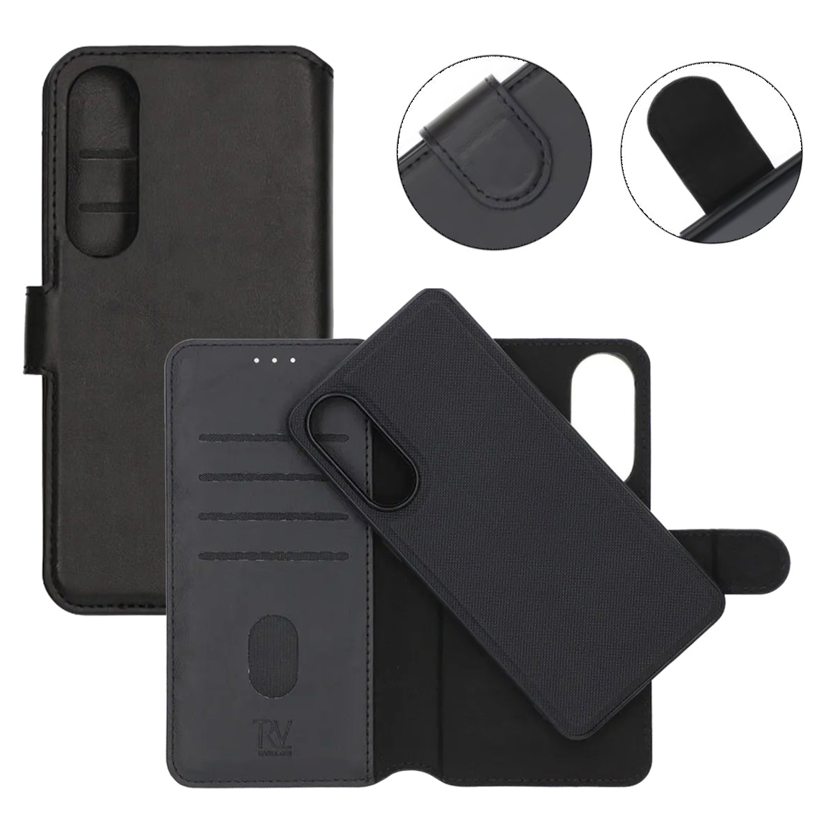 Ge din Samsung Galaxy A17 ett pålitligt skydd med Rvelons eleganta svarta plånboksfodral.