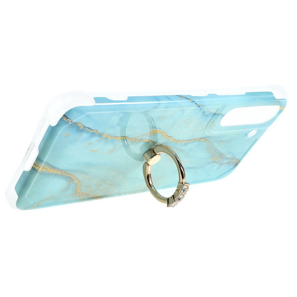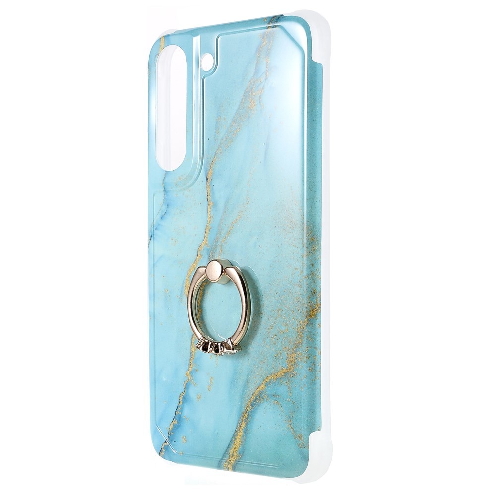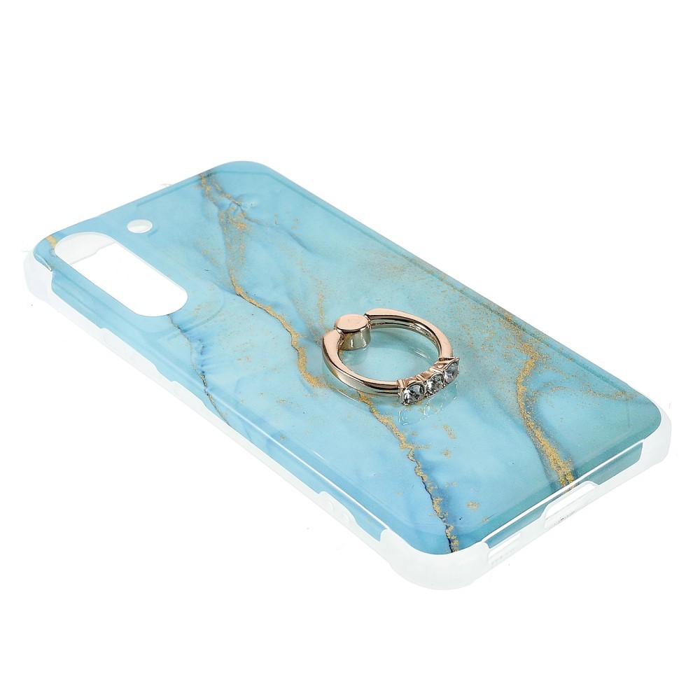 Samsung Galaxy S22 Plus Skal med Ring Marmormönster Ljusblå