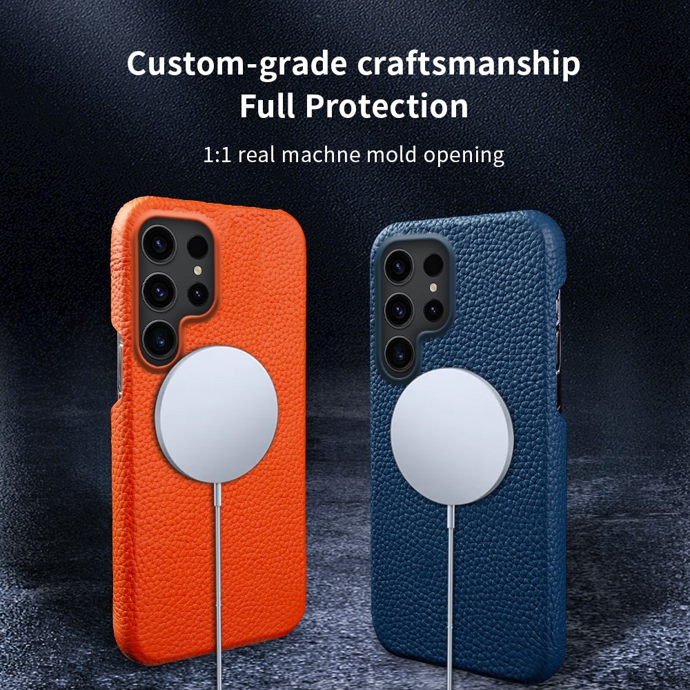 Samsung Galaxy S23 Ultra Skal Äkta Läder MagSafe Ljusgrön