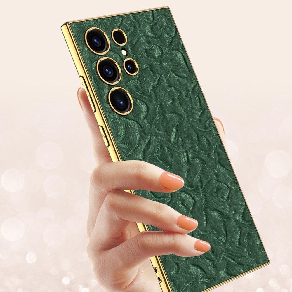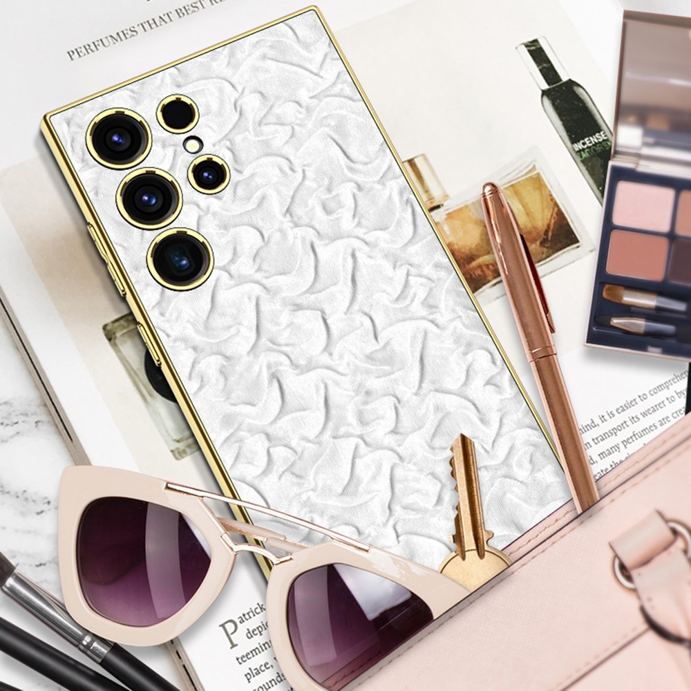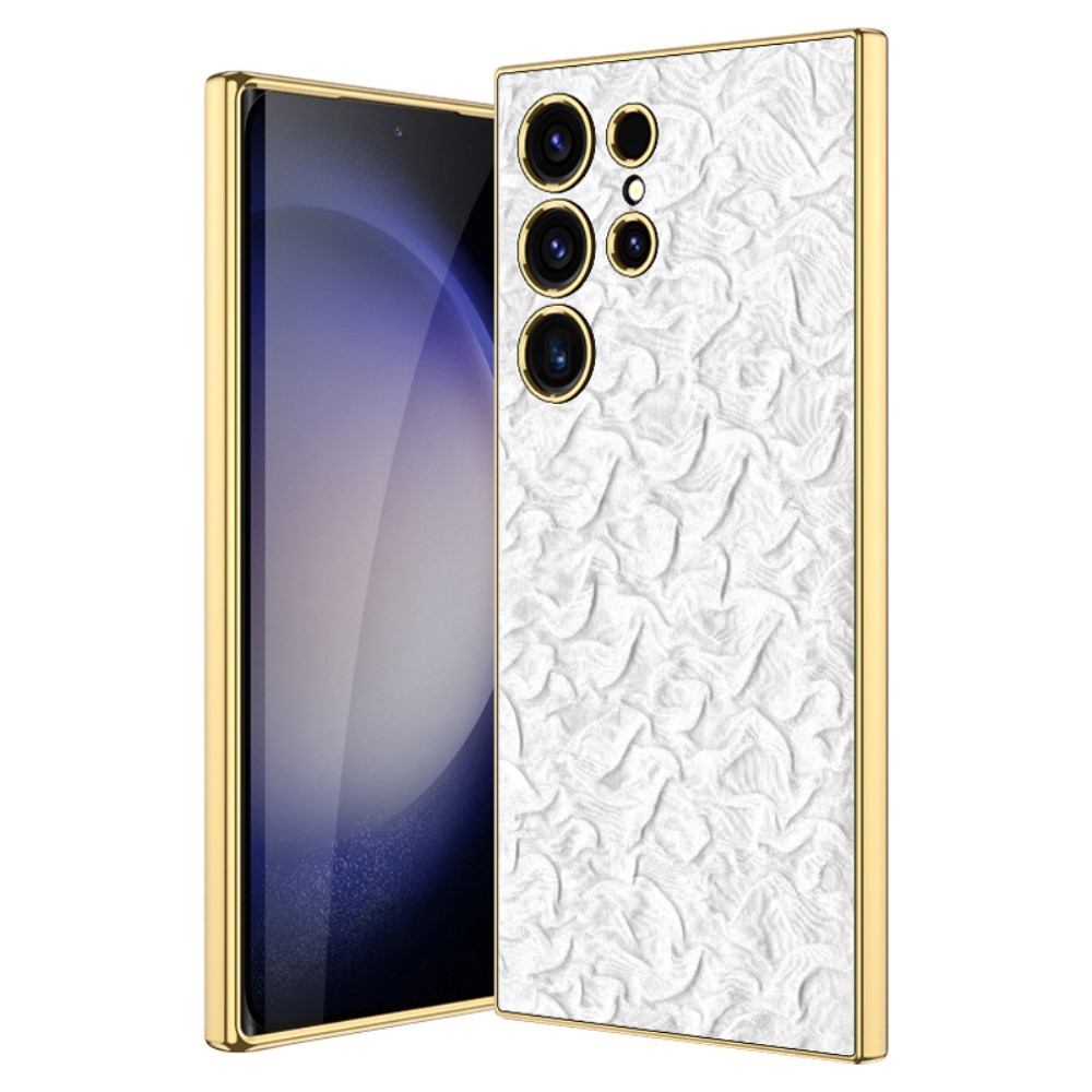 GKK Samsung Galaxy S23 Ultra Skal Tyg Pläterad Kant Vit
