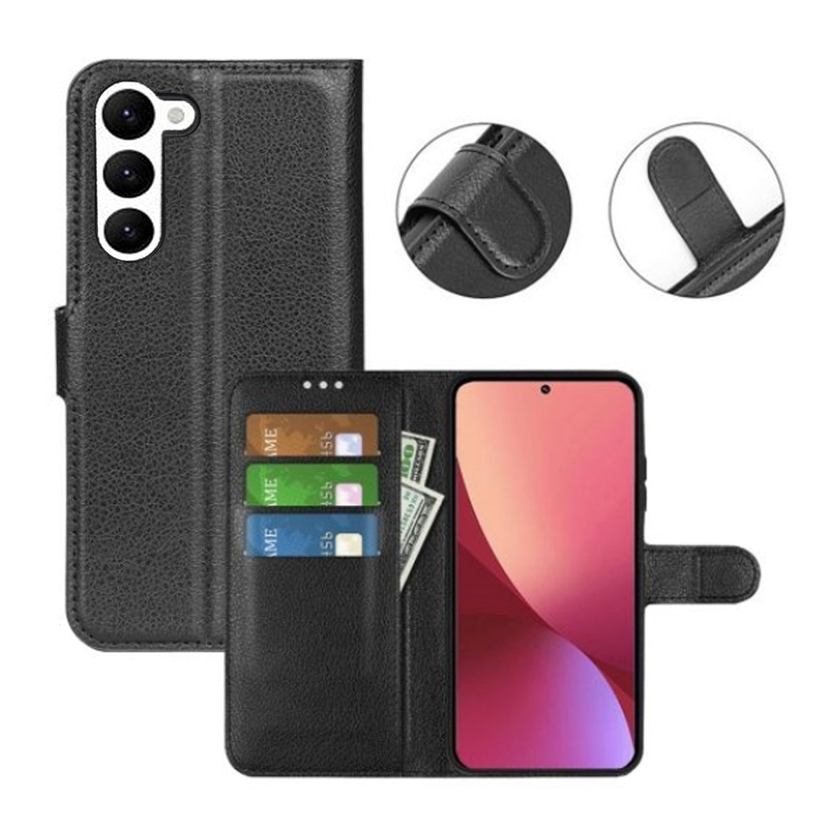 Plånboksfodral med stativ till Samsung Galaxy S23 - Svart