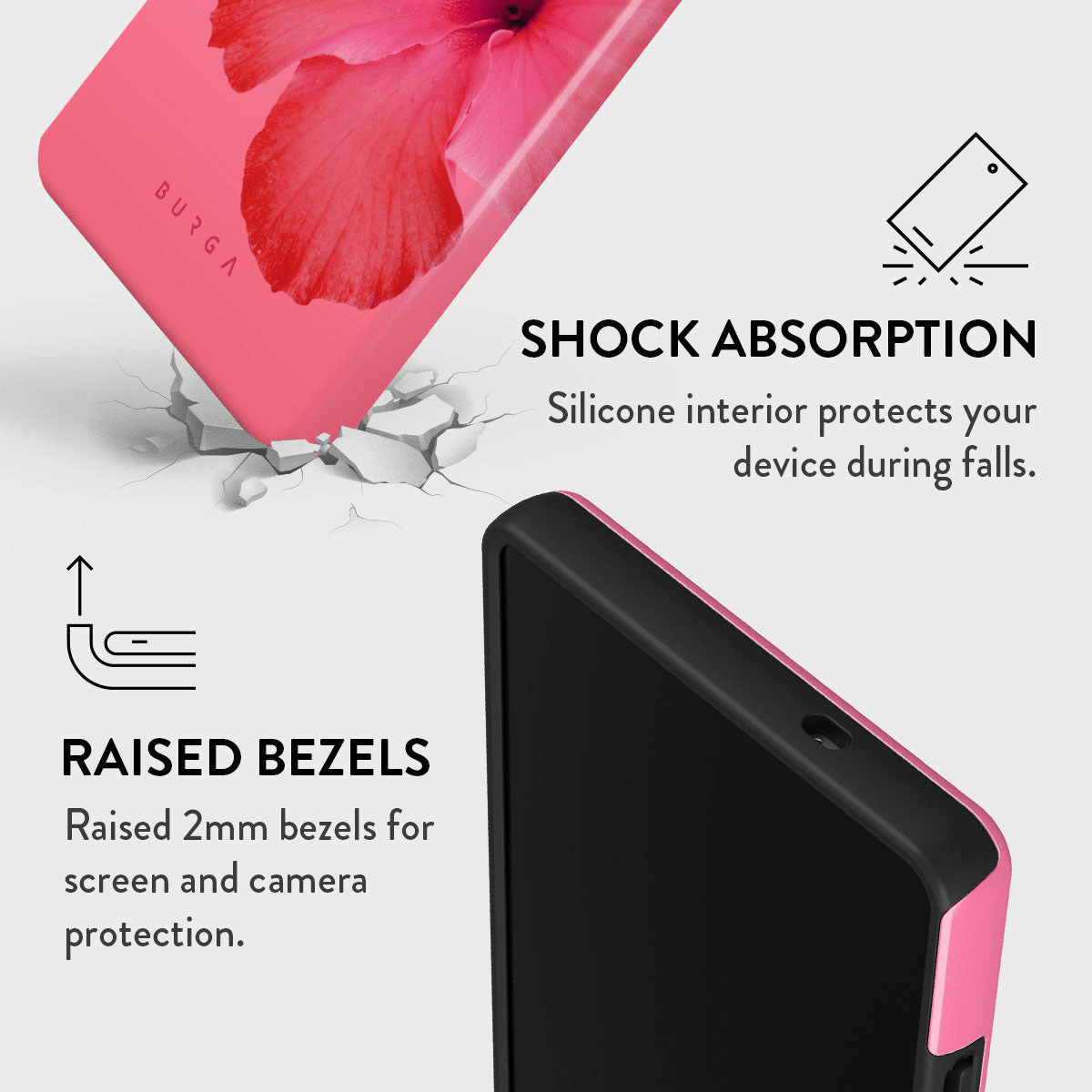 För att minska risken för repor i vardagen har telefonskalet upphöjda kanter som hjälper till att skydda både skärm och kamera när du lägger mobilen på en plan yta.