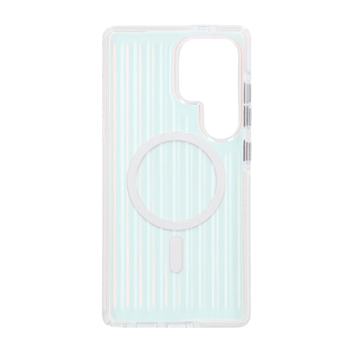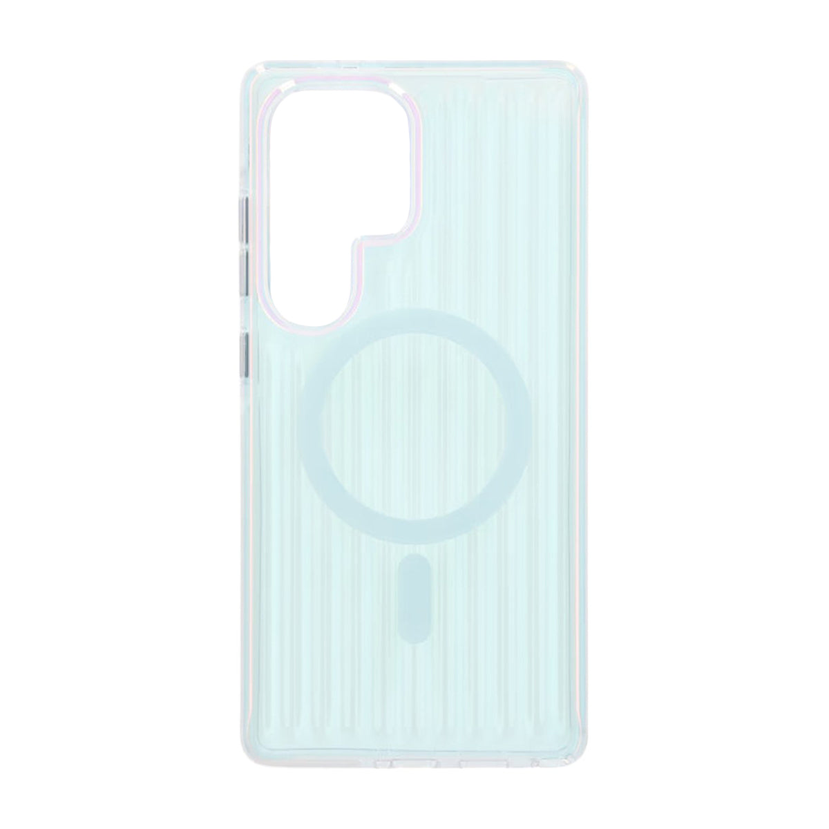 Ge din Samsung S25 Ultra en unik look med detta stöttåliga mobilskal som har en reflekterande iriserande finish med ett inslag av blå färg.