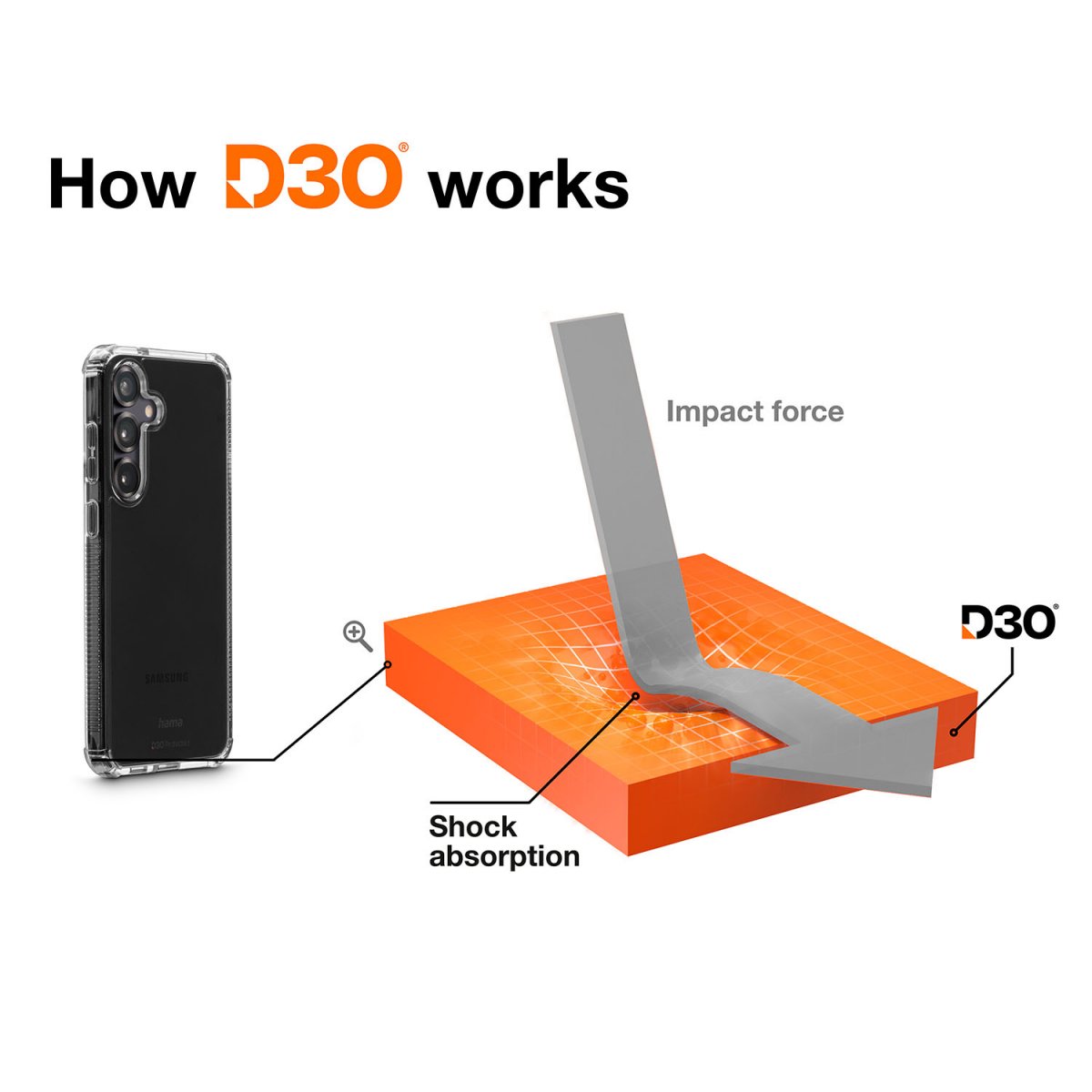 Mobilskalet är Stöttålig och gjort för att hantera stötar samt minska risken för sprickor. Materialet är D3O-material, och ytan är reptålig med 4H-hårdhet för att stå emot märken från vardagsbruk.