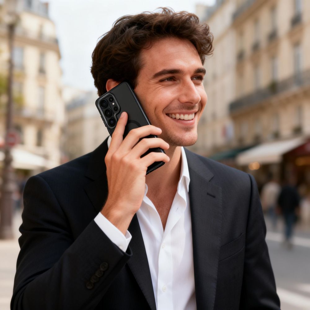 En upphöjd kant runt kameran och skärmen gör att mobilen hamnar något ovanför underlaget när den läggs på en plan yta.