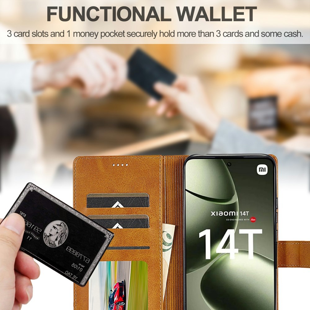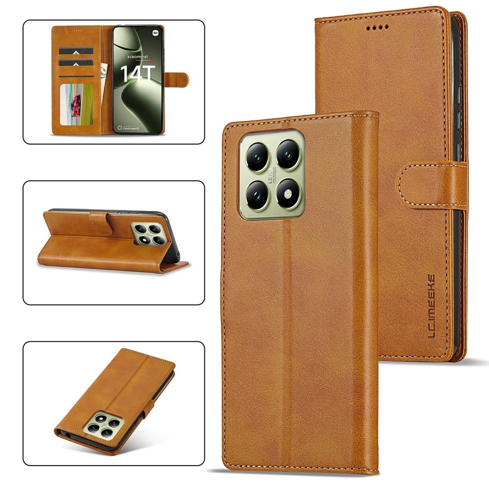 LC.IMEEKE Xiaomi 14T Fodral med Kortfack Stativfunktion Ljusbrun är ett brunt mobilfodral till Xiaomi 14t.