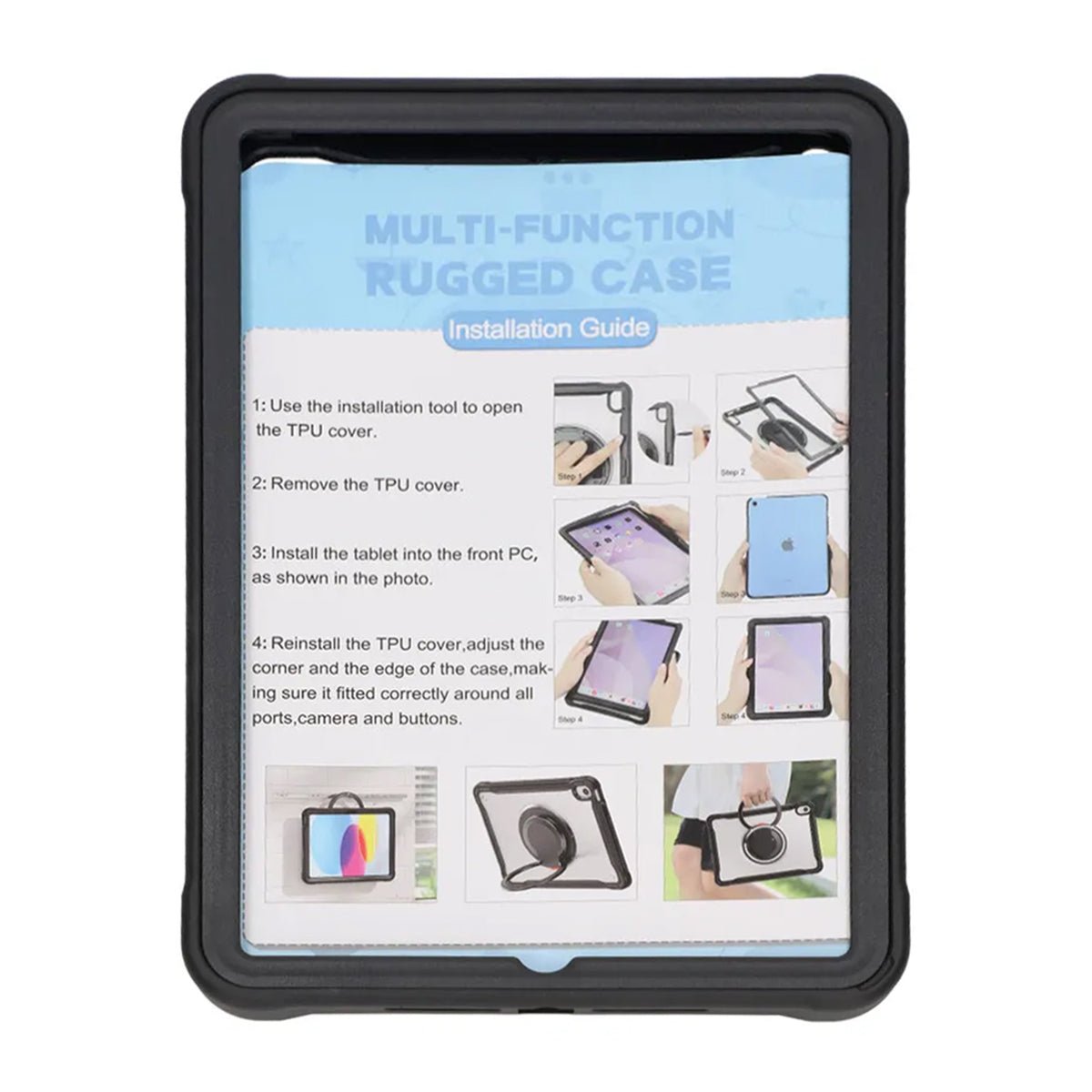 Detta fodral är tillverkat i TPU och plast för att absorbera stötar och skydda din iPad mot repor, stötar och andra skador vid daglig användning.