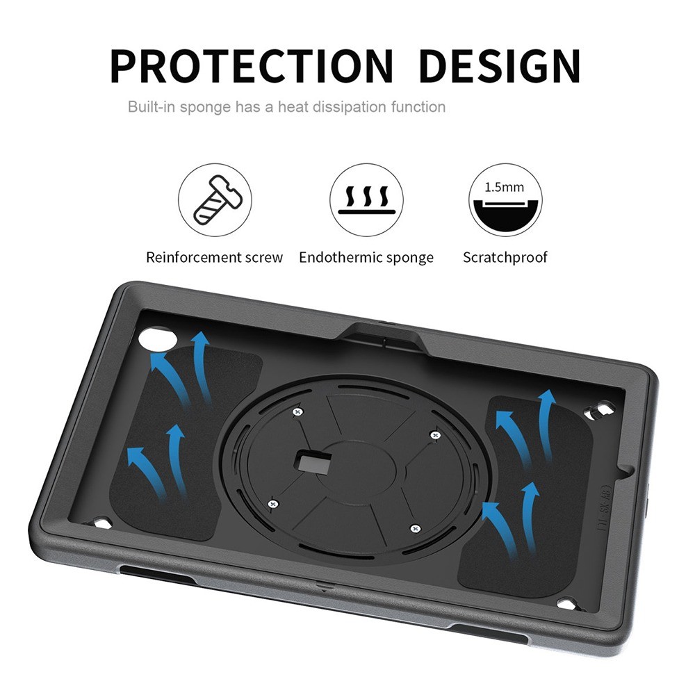 Skyddet är byggt i flera lager med en kärna av polykarbonat och ett yttre lager av TPU, för att minska risken för skador vid fall och stötar. Produkten är Stöttålig och passar när surfplattan används i miljöer där den lätt kan tappas.