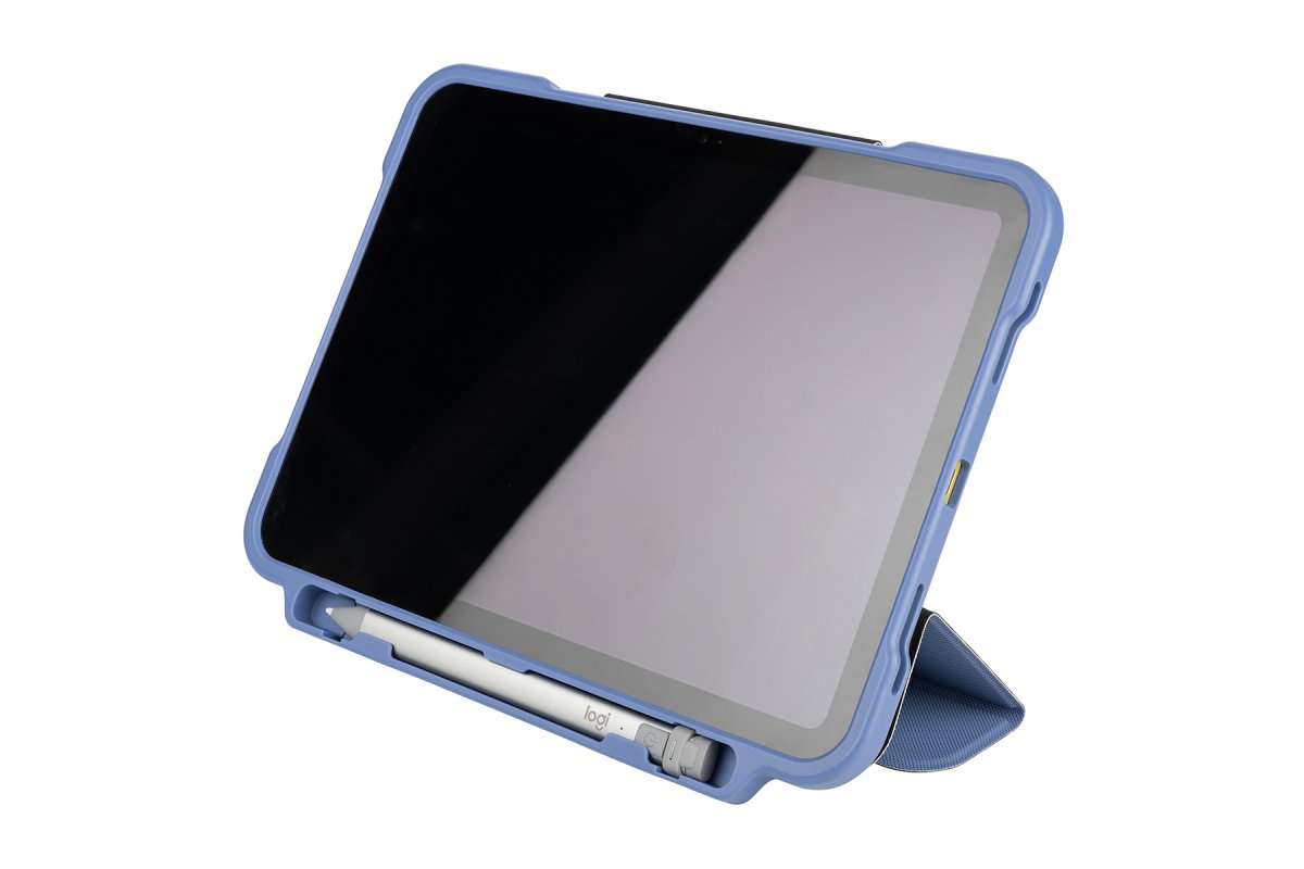 Superskyddande fodral delvis tillverkat av återvunnen plast. Fodrlaet har ett stötdämpande bakskal som bildas av en TPU-kant och en stor mittdel i transparent polykarbonat. Tack vare den militära droppcertifieringen MIL-STD-810 din surfplatta är skyddad. Frontfliken fungerar även som ett stativ som kan justeras i en mängd olika positioner samtidigt som den praktiska magnetstängningen ger extra skydd för din enhet. Alunno är utrustad med ett inre fack för Apple Pencil eller Logitech Crayon.