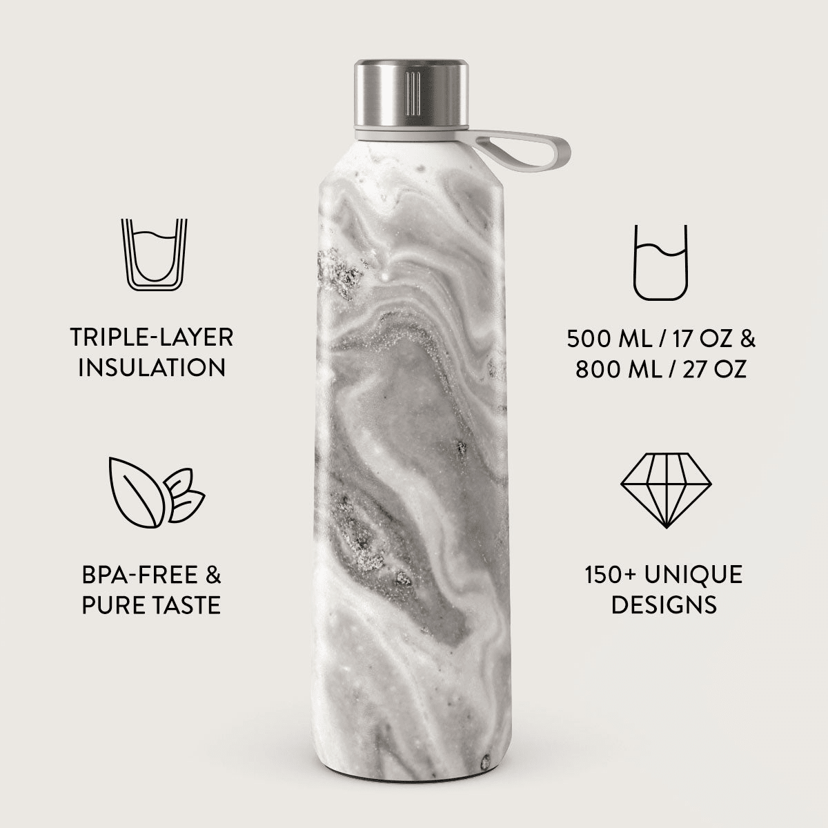 Välj bland ett brett sortiment av unika BURGA-mönster, alla noggrant parade med ett av tre stilrena lock i rostfritt stål: gunmetal, roséguld eller silver. Varje kombination väljs med omsorg av vårt team, så att resultatet alltid känns genomtänkt och harmoniskt.