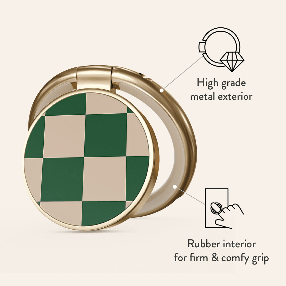 En ringhållare som verkligen förändrar hur du använder din telefon. Genom att trä ett finger genom ringen får du ett tryggt grepp, bättre kontroll med en hand och större bekvämlighet när du scrollar eller skriver längre texter.