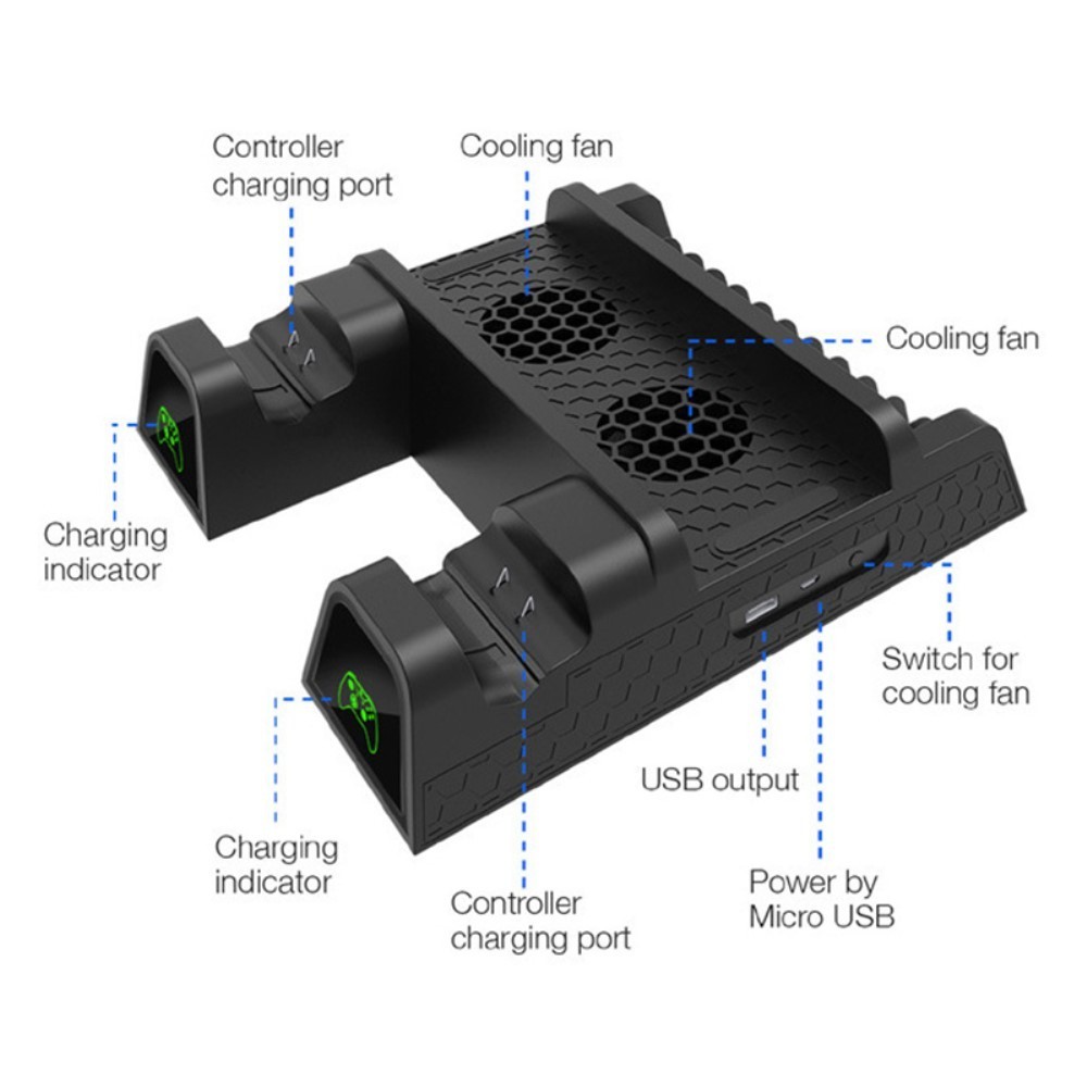 - Effektiv kylning: Med en fläkthastighet på 5000 ± 10% PRM och en luftflödeshastighet på 12,6 CFM är detta fläktställ utformat för att effektivt dissipera värme och hålla din Xbox One X/S-konsol sval under intensiva spelsessioner.