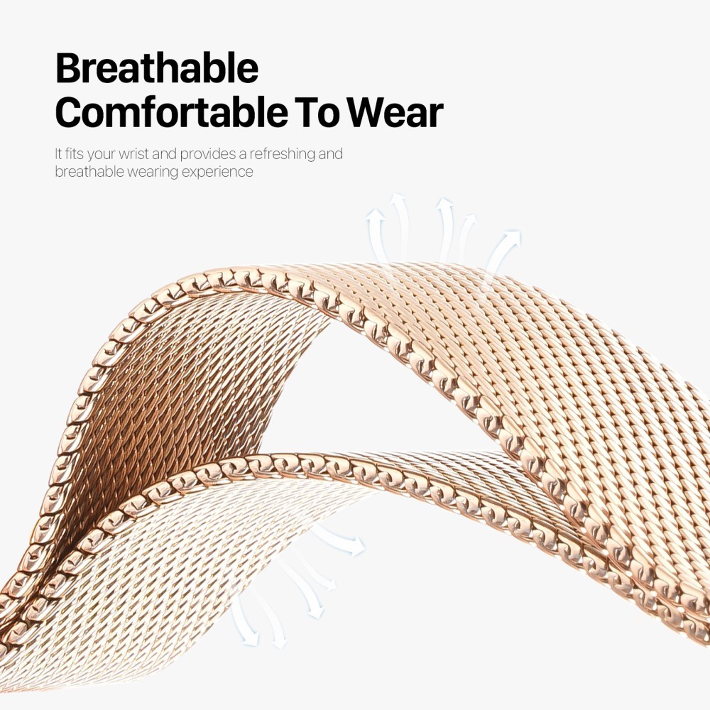 Tack vare Magnetstängning går det snabbt att anpassa klockarmbandet efter handleden. Den täta mesh-strukturen ger ett jämnt och slätt intryck mot huden.