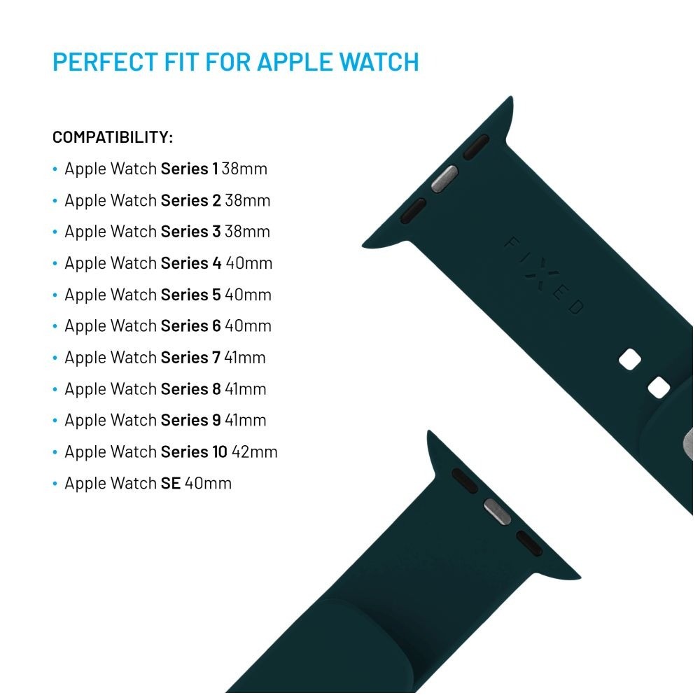 Fixed Apple Watch 38/40/41/42mm Armband Silicone Sporty Strap Mörkgrön är ett grön armband till Apple Apple Watch 38mm, Apple Apple Watch 40mm, Apple Apple Watch 41mm och Apple Apple Watch 42mm.