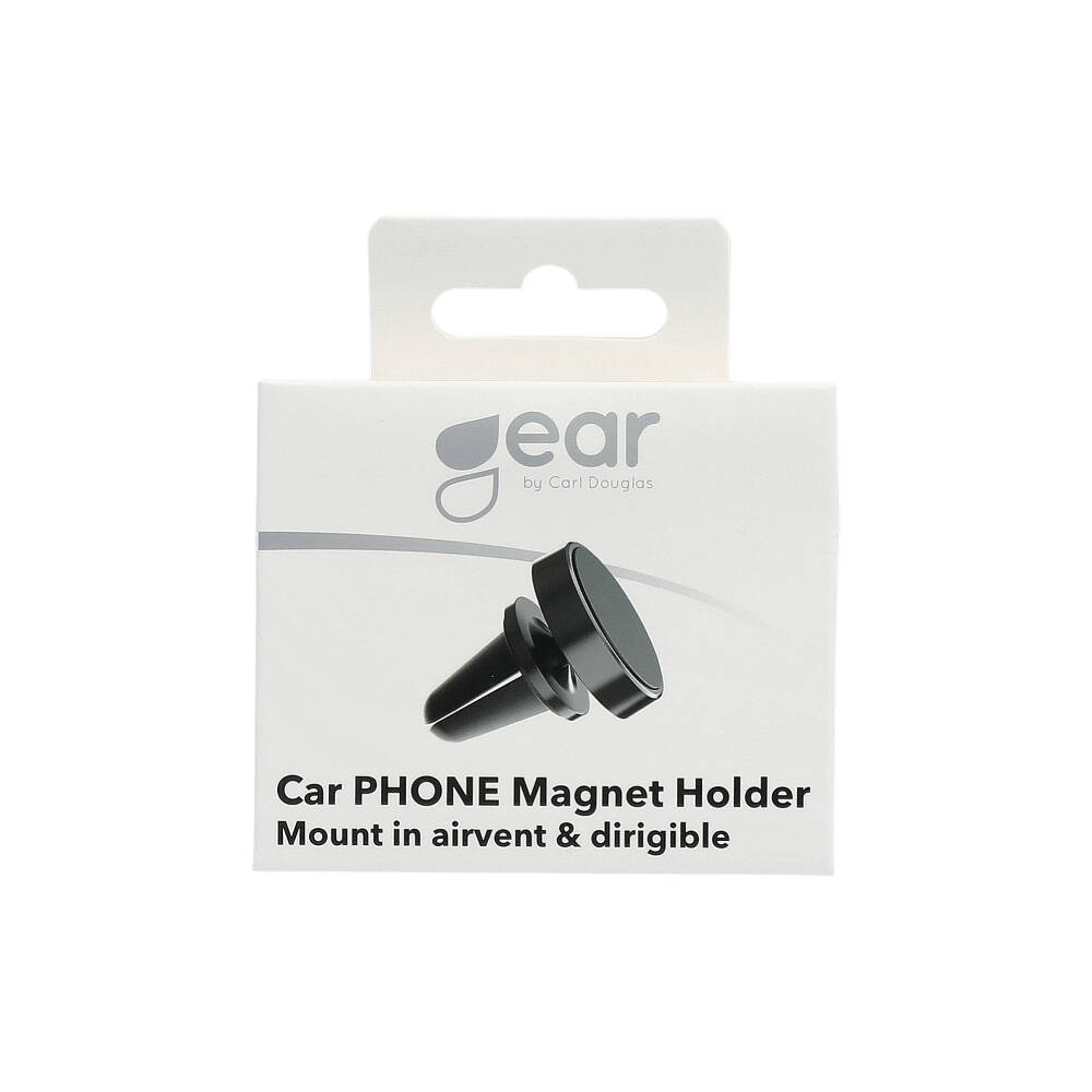 Magnetisk hållare för telefoner för montering i bilens ventilationsgaller. Fungerar med de flesta mobilskal på marknaden som har metall inuti skalet. Levereras med metallplatta för att fästa bakpå telefon eller bakom mobilskal vid behov.