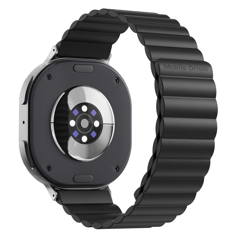 Mobile Origin Easy Strap Magnetic är skapat för att harmoniera med Samsung Galaxy Watch 8:s karaktär. Det magnetiska fästet håller armbandet tätt mot klockan och bildar en kompakt enhet som fungerar lika bra på stan som på gymmet.