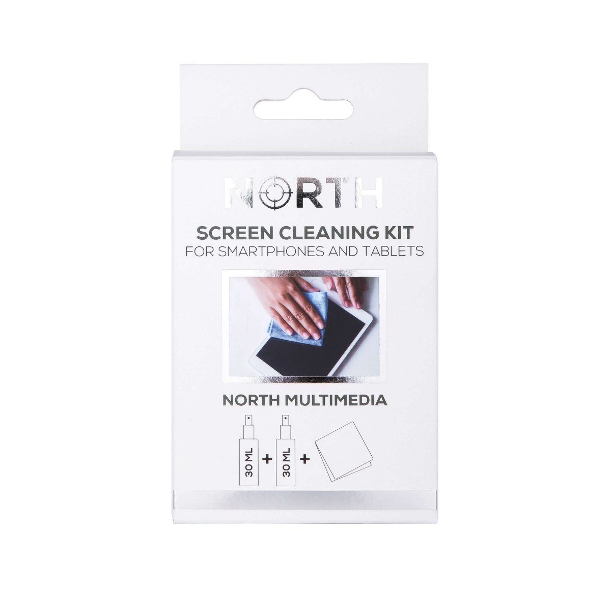 Rengöringskit för smartphones och surfplattor. Består av 2st 30ml rengöringssprayer och en mikrofiberduk.