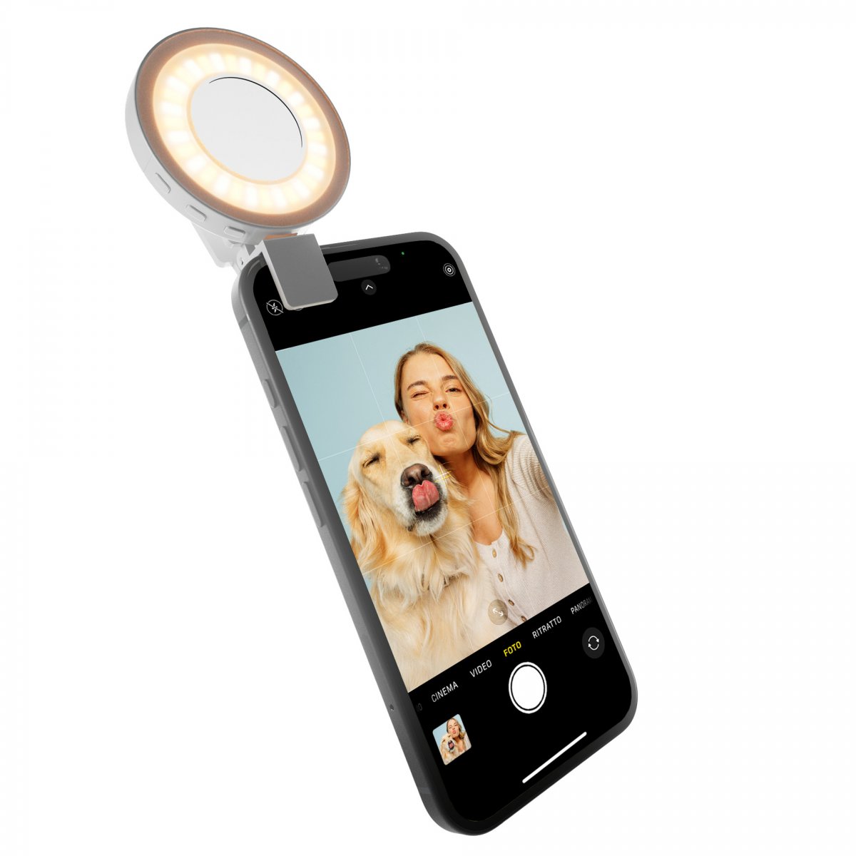 Dessutom, tack vare sin krok, kan ljusringen klippas på kanten av alla smartphones för perfekt belysta selfies.