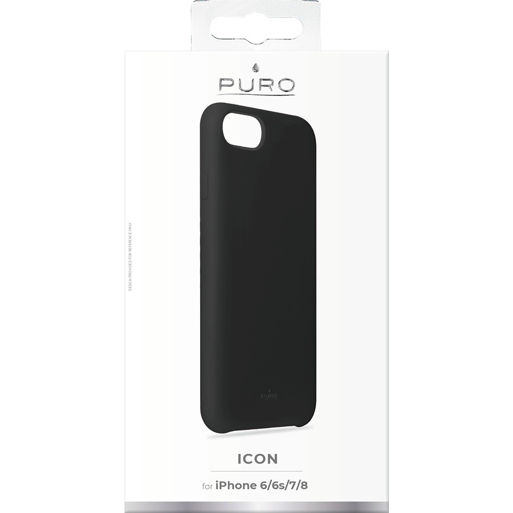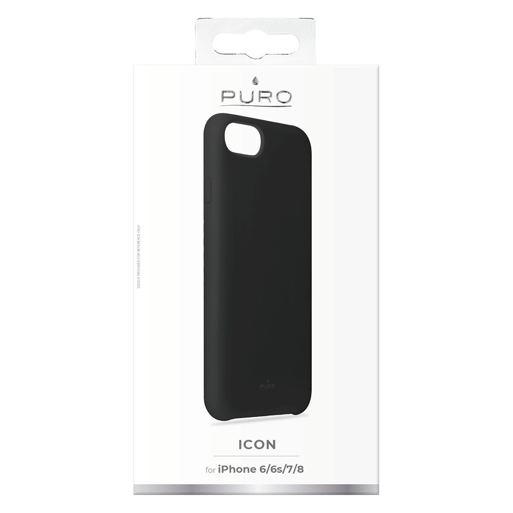 Puro iPhone 6/6S/7/8/SE Skal Icon Svart är ett svart mobilskal till iPhone 6/6S, iPhone 7, iPhone 8, iPhone SE 2020 och iPhone SE 2022.