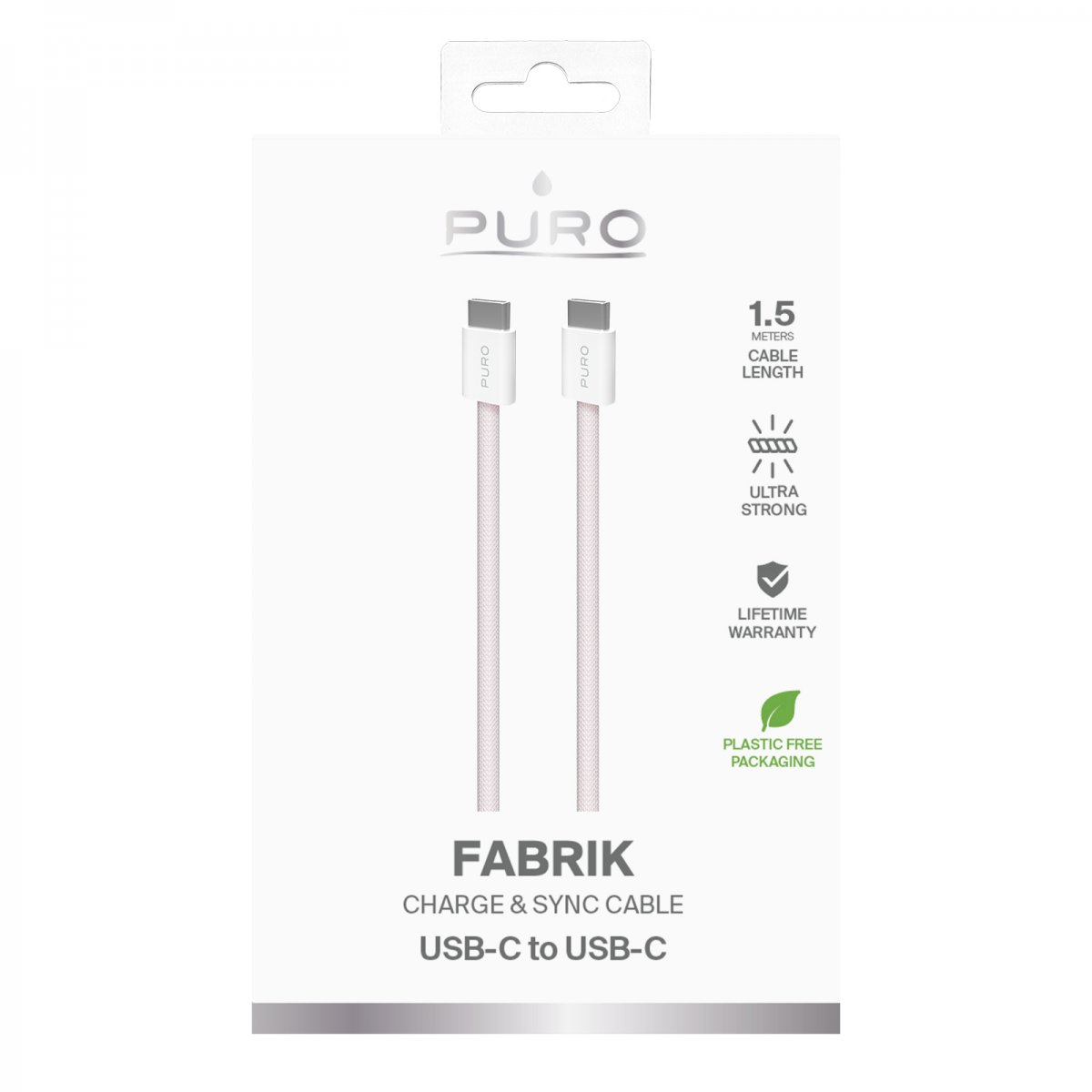 Puros 1,5 meter långa kabel är belagd med ett robust vävt TPE-tyg som garanterar exceptionell hållbarhet. Dess kontakter skyddas av förstärkta kabelklämmor, vilket ger kabeln extra hållbarhet för att klara av vardagligt slitage.