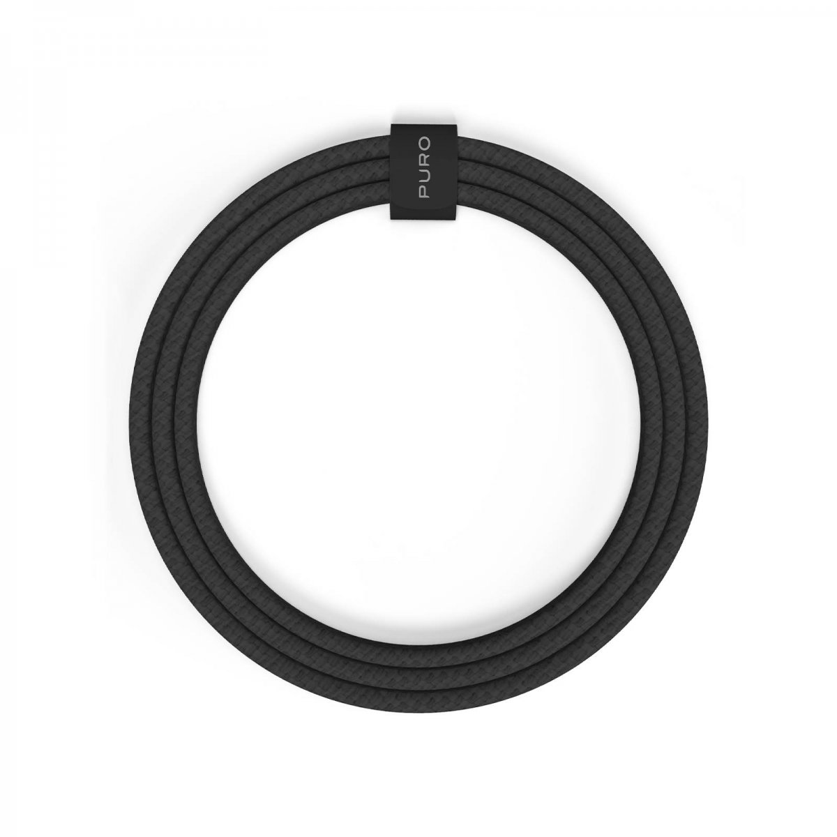 Puro's 1,5 meter långa kabel är belagd med ett robust vävt TPE-tyg som garanterar exceptionell hållbarhet. Dess kontakter är skyddade av förstärkta kabelklämmor, vilket ger kabeln extra hållbarhet för att klara av vardagligt slitage.