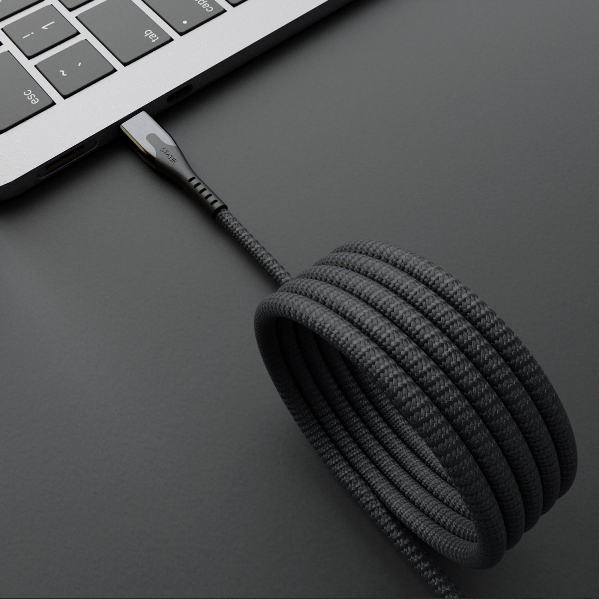Det som verkligen skiljer MagStack Pro från vanliga kablar är materialet: ett helmagnetiskt förstärkt nylon som gör att kabeln automatiskt rullar ihop sig till en prydlig spole när den inte används. Trassel och hopknutna ledningar tillhör det förflutna. USB-C till USB-C-anslutningen innebär att du kan ladda telefonen via din bärbara dator, starta upp datorn, eller ansluta kabeln till ett vägguttag med hjälp av en adapter.