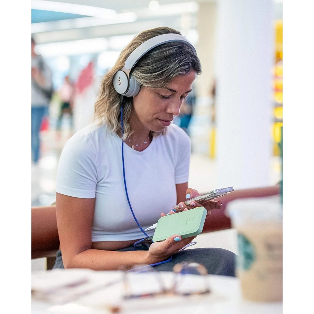 Denna 10 000 mAh Power Bank har två USB-C-portar och en USB-A-port. 20W USB-C PD-utgången är perfekt för snabbladdning av alla typer av mobila enheter. Power Banks hölje är till största delen tillverkat av återvunnen plast, för att stödja en hållbar framtid. Den vackra samtida, men ändå lugnande färgen på denna FS5 Power Bank, passar perfekt med det unika mönstret på Power Bank. Vilket gör den till en underbar färdig produkt att ta med dig vart du än går!
